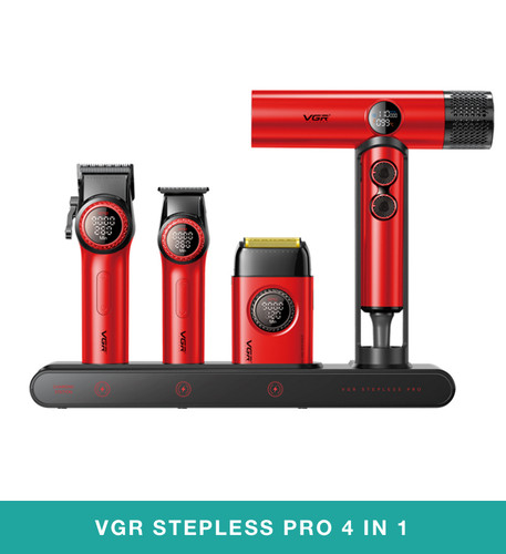 VGR-STEBLRES PRO 4in1 مجموعه ۴عددی {رنگ مشکی } اصلاح مو همراه سشوار