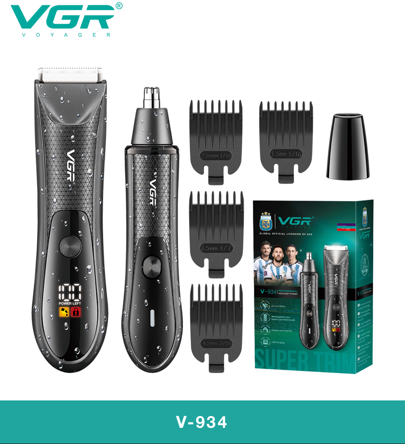 ست 2 در 1 VGR مدل V-934۲ ترکیبی بینظیر از تکنولوژی روز و طراحی ارگونومیک است. این ست کامل شامل بادی تریمر سرامیکی برای اصلاح بدن و موزن حرفهای برای بینی و گوش میباشد که تمام نیازهای آراستگی شما را در یک بستهبندی پاسخ میدهد.