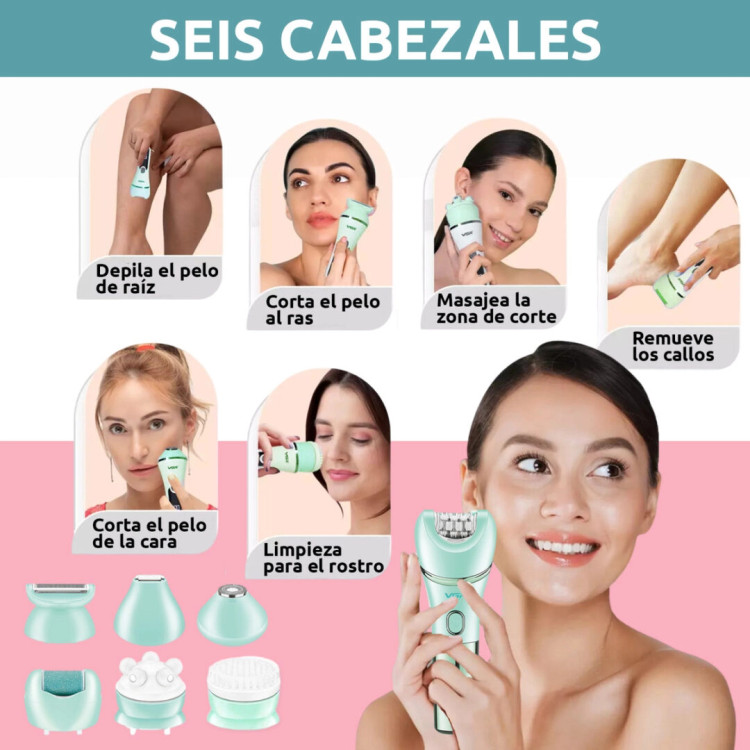 - ✅ هفت کاره کامل: اپیلاتور، خطزن، سنگپا، شیو، فیسبراش، ماساژور، موزن صورت