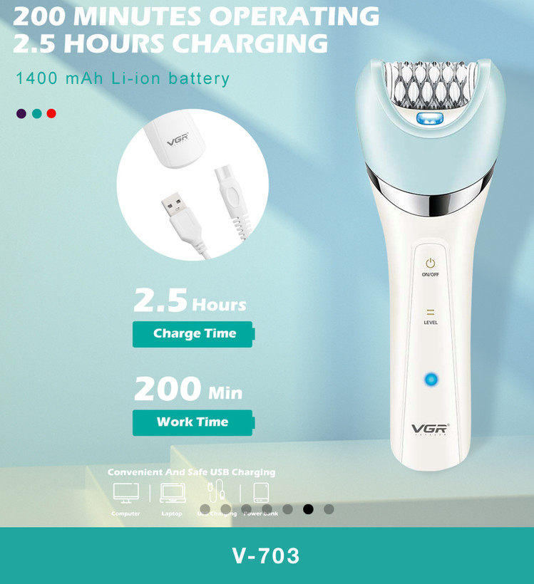 اپیلیدی 5 کاره VGR مدل V-703 دارای بهترین سیستم لایهبرداری و ماساژ است که به شما امکان میدهد همیشه پوستی صاف و بدون موهای ناخواسته داشته باشید. احتمال درد در حین عمل کاملاً کاهش یافته است.