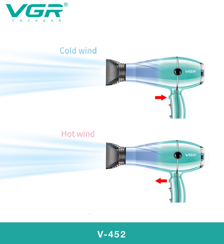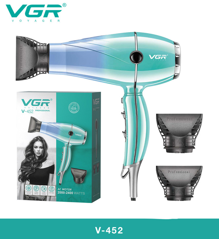 "سشوارهای VGR با نظارت مهندسان ایرانی و استفاده از بهترین قطعات جهانی تولید میشوند. مدل V-452 به طور خاص برای استفاده سالنی و حرفهای طراحی شده و با قدرت 2400 وات و کابل ۳ متری، نیازهای سالنهای آرایشگاهی را به طور کامل برآورده میکند."