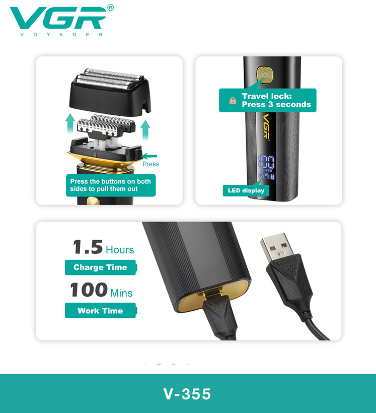 شیور وی جی آر مدل VGR V-355 | شیور فویلی جدید ۲۰۲۴۱ | تیغه فویلی دوتایی۲