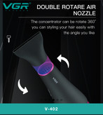 سشوار سالنی حرفهای VGR مدل V-402 | موتور AC 2400W۱ | تکنولوژی یونی۲