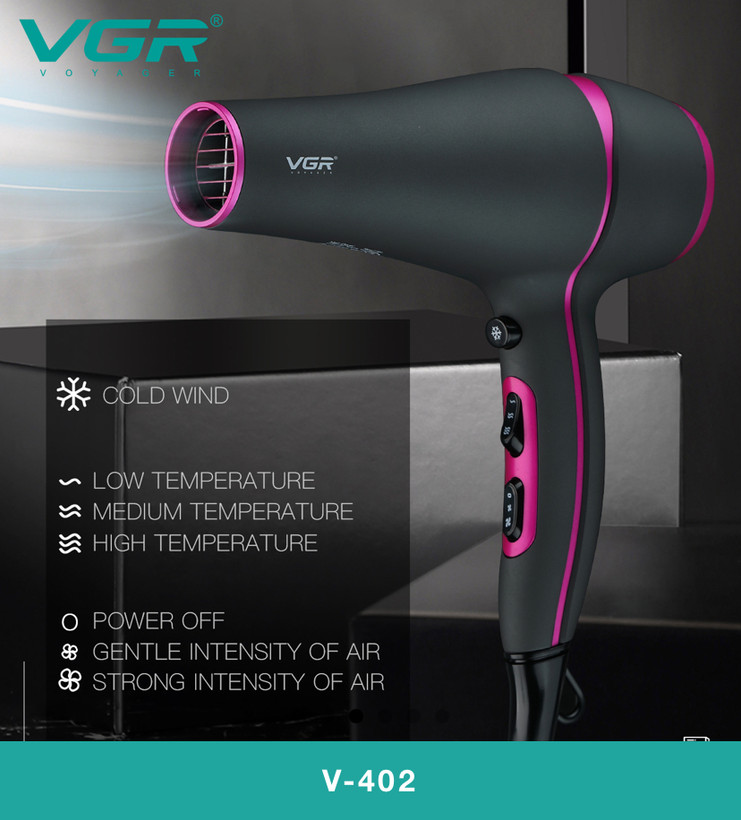 سشوار سالنی حرفهای VGR مدل V-402 بدون شک انقلابی در صنعت دستگاههای آرایش مو محسوب میشود. با موتور AC 2400W۳۶، تکنولوژی یونی و 3 حالت دما، این دستگاه تمام استانداردهای جهانی را رعایت کرده است.