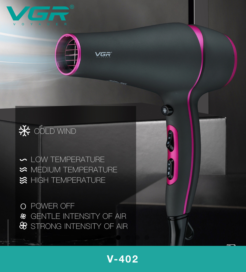 سشوار سالنی حرفهای VGR مدل V-402 | موتور AC 2400W۱ | تکنولوژی یونی۲