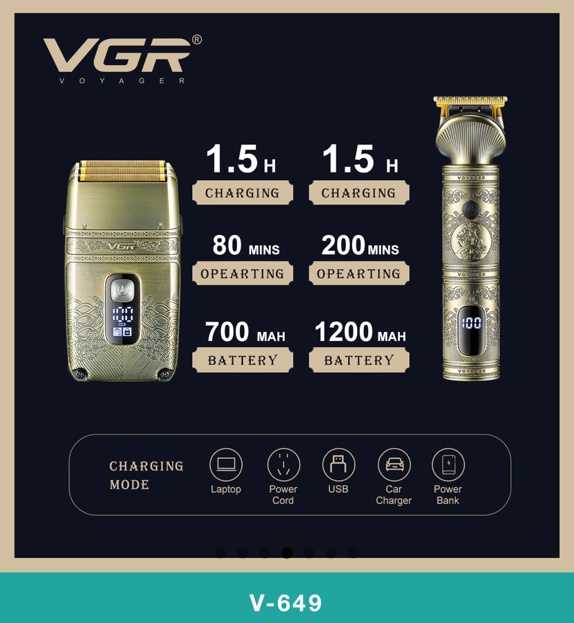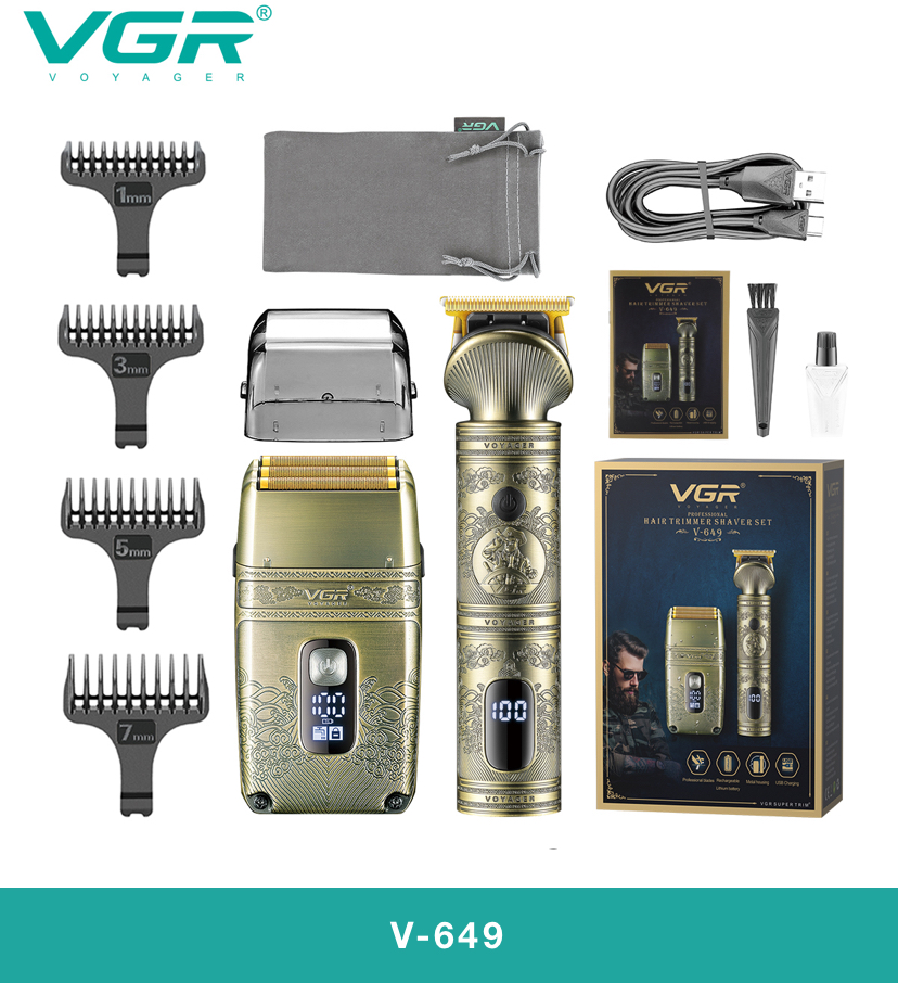 ست کامل شیور و خطزن VGR مدل 649 | بدنه فلزی ارگونومیک۱ | نمایشگر LED دیجیتال۲