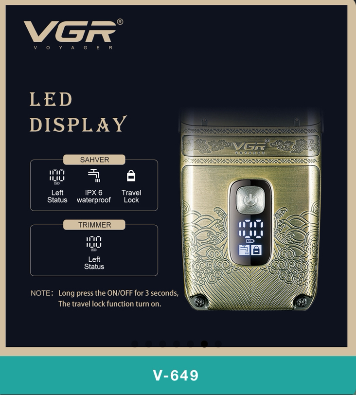 - دستگاه شیور VGR 649 با بدنه فلزی و نمایشگر LED