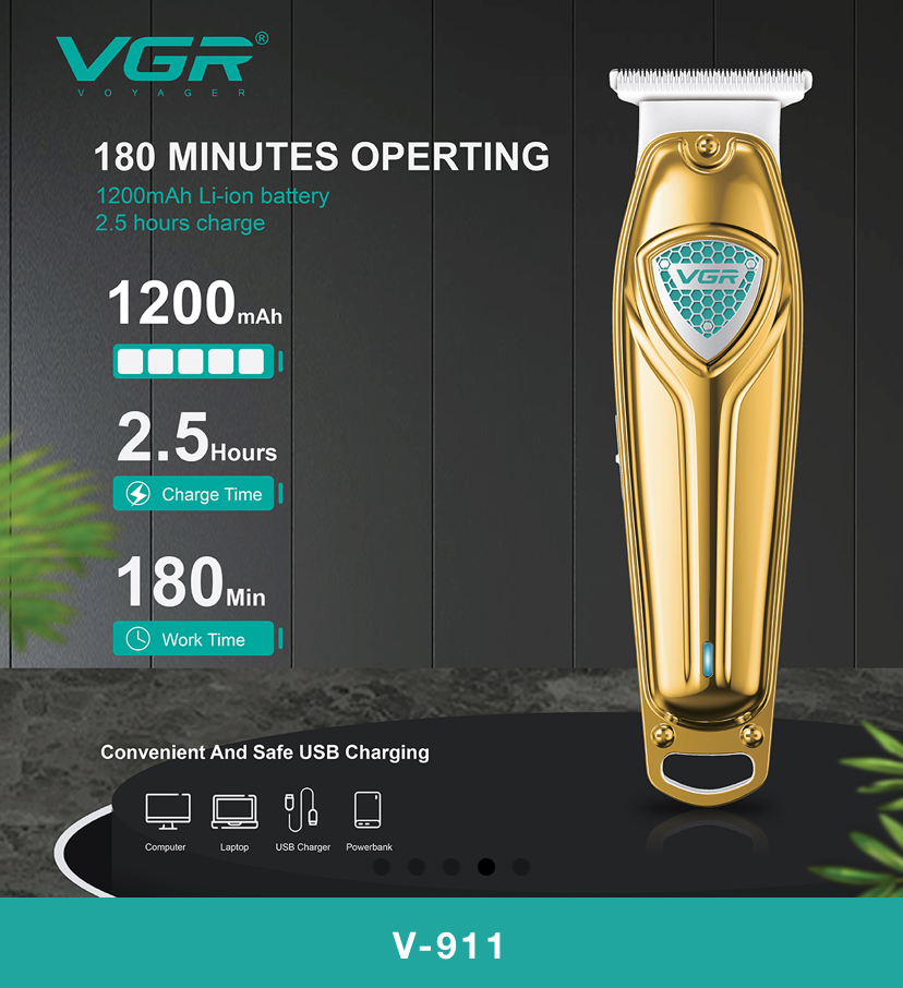 ماشین اصلاح وی جی آر مدل V-911 | خطزن حرفهای۱ | باتری 120 دقیقهای۲ | وزن 156 گرم۳
