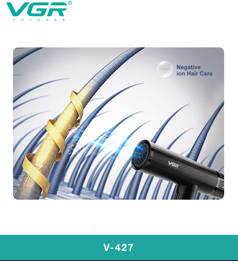 فناوری Negative Ion Fusion در VGR V-427 استفاده شده که شامل تولید یونهای منفی با بار الکتریکی منفی است. این یونها به مولکولهای آب مثبت روی مو متصل شده و آنها را خنثی میکنند. این تکنولوژی باعث کاهش ۷۵٪ وز مو، افزایش ۶۰٪ درخشندگی و صافی ۵۰٪ بیشتر نسبت به سشوارهای معمولی شده است.