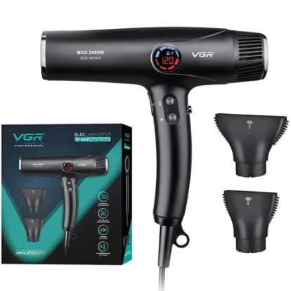 سشوار حرفهای VGR مدل V-469 بهترین انتخاب برای آرایشگاههای شلوغ و متخصصانی است که به کیفیت و سرعت کار اهمیت میدهند. با توان واقعی 2400 وات، موتور BLDC 110,000 دور و نمایشگر LED پیشرفته، این دستگاه تمام نیازهای یک سالن حرفهای را برطرف میکند.
