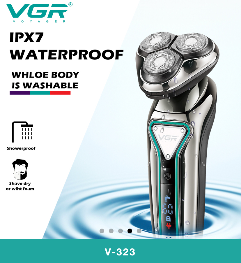 سیستم ضد آب VGR V-323 این قابلیت را دارد که پس از هر بار استفاده، به راحتی زیر آب شسته شود. شما میتوانید تیغهها را زیر شیر آب گرفته و تمام باقیمانده موها و کرمهای اصلاح را پاک کنید. این ویژگی نه تنها بهداشت دستگاه را تضمین میکند، بلکه عمر مفید تیغهها را نیز افزایش میدهد. نمایشگر LED هوشمند نیز وضعیت باتری را بهطور دقیق نشان میدهد.