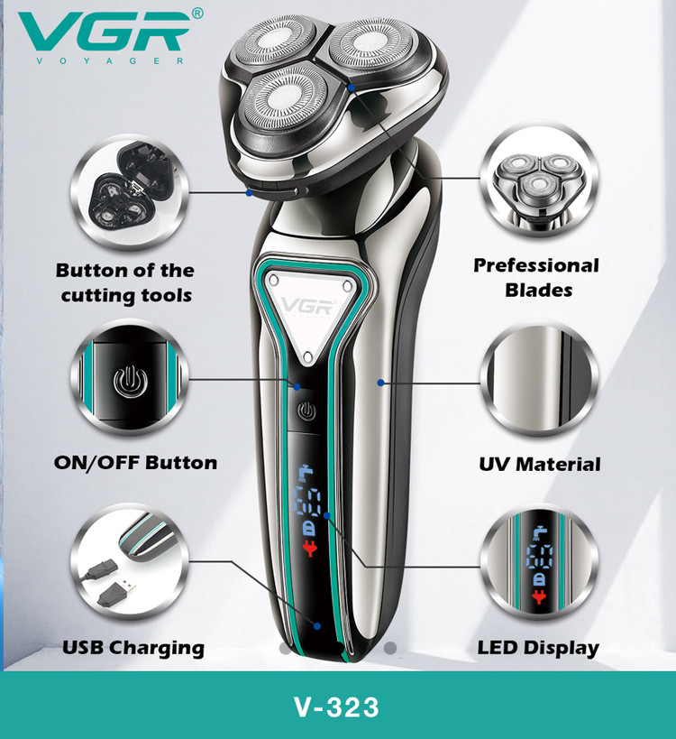 ریش تراش ویجیآر مدل V-323 | تیغه تیتانیوم فوق تیز | اصلاح صفر و راحت